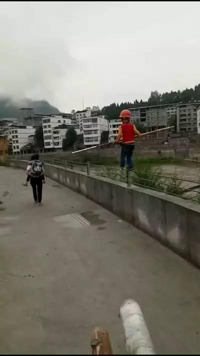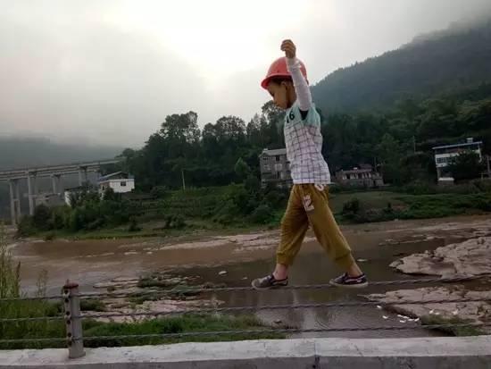 天蒙蒙亮,川东北的山地雾气缭绕,瘦小的望望头戴红色安全帽,双手握住保持平衡用的竹竿,在离地12.5米、足有1公里长的河堤护栏钢丝上行走。傍晚的时候,钢丝则被挪到山里,架在两棵树中间,望望需要走上几个来回。